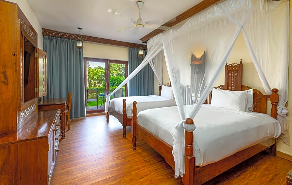 Turaco Nungwi Resort is a 4-star beachfront escape in Nungwi Village, Tanzania. It sits right on the sand with a private beach area and sea views. The setting includes a garden with relaxing corners, live music performances, and a Bar and Sun deck for sunset moments.